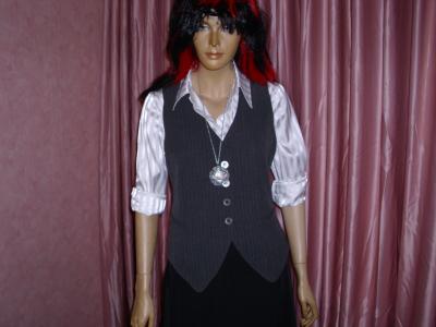 Schwarzer Rock, weiße Bluse - locker an den Armen gekrempelt - dazu eine Weste und schwarze Stiefel, fertig ist das Joboutfit!